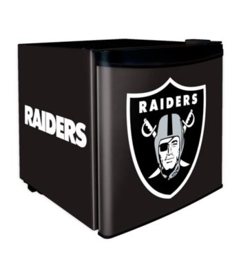 Refrigerator. Web exclusive! Finish off your home bar while showing off your Raiders pride with this dorm style fridge. Just because the NFL Raiders Dorm Room Fridge is dorm sized doesn t mean it won t be able to chill everything you need it to. With a 60 can capacity, this fridge also includes a front wrap of the Raiders logo, 7 cooling settings for refrigeration precision and small freezer section ideal for ice cube trays and more compact items. 17.69" x 18.44" x 18.69"; 1.7 cubic ft.; 40lbs (60) Can capacity Includes a small freezer section Cooling capacity features ... Read more