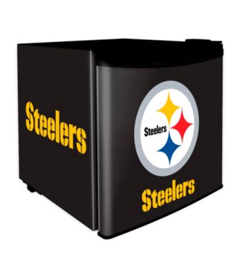Refrigerator. Web exclusive! Finish off your home bar while showing off your Steelers pride with this dorm style fridge. Just because the NFL Steelers Dorm Room Fridge is dorm sized doesn t mean it won t be able to chill everything you need it to. With a 60 can capacity, this fridge also includes a front wrap of the Steelers logo, 7 cooling settings for refrigeration precision and small freezer section ideal for ice cube trays and more compact items. 17.69" x 18.44" x 18.69"; 1.7 cubic ft.; 40lbs (60) Can capacity Includes a small freezer section Cooling capacity features ... Read more